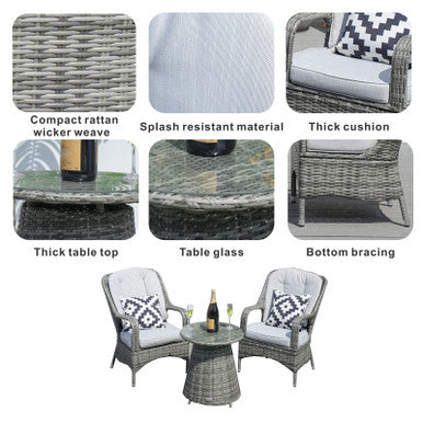 - Material: PE Wicker + Aluminum Frame + 5mm Tempered Glass