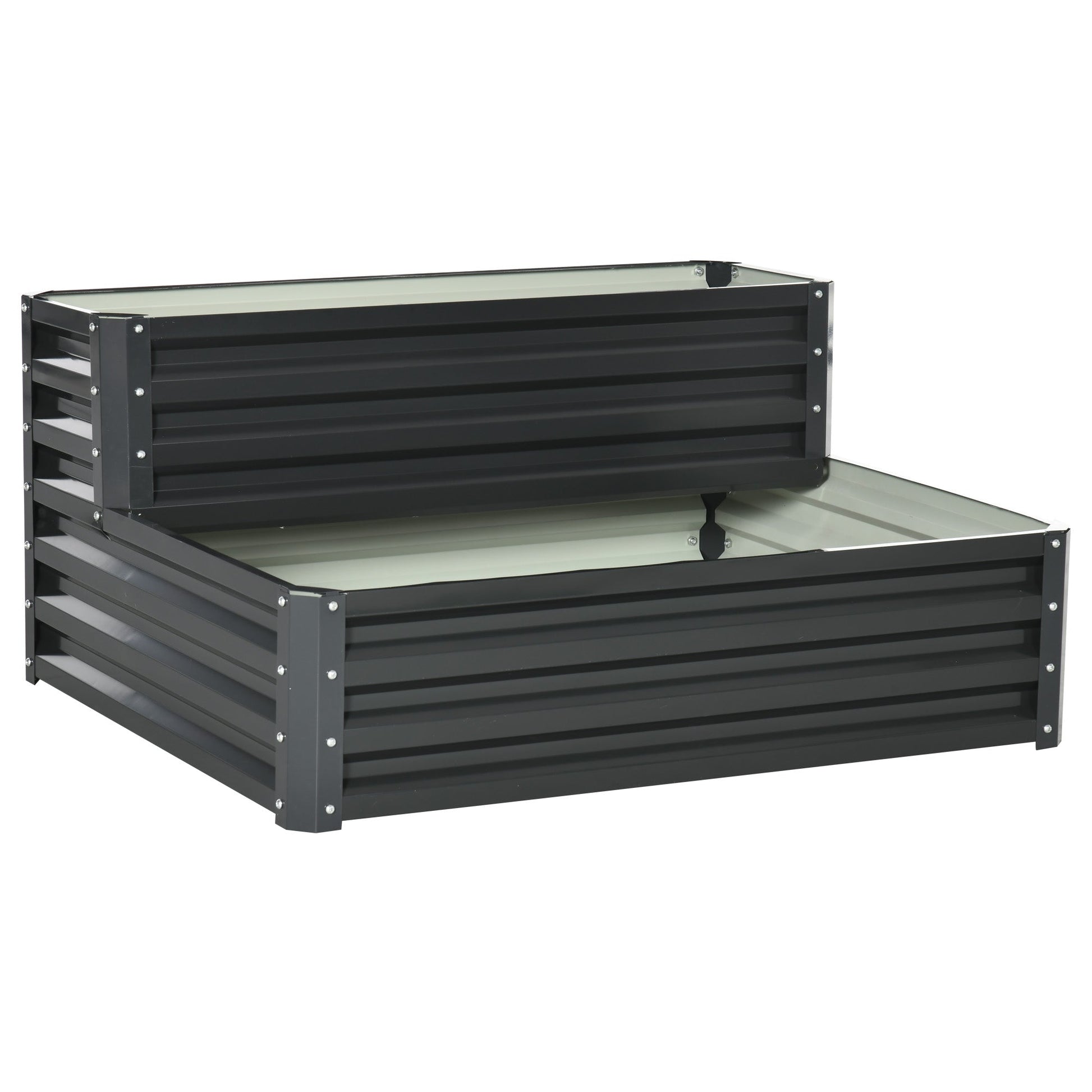 2 Tier Raised Garden Bed, Galvanised Planter Box for Vegetables Flowers Herbs, Dark Grey