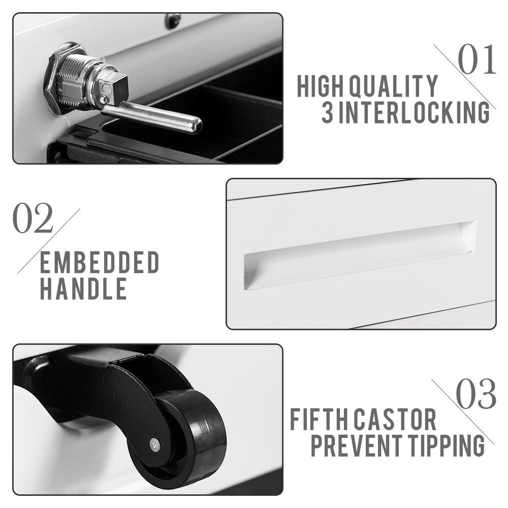 3 Drawer File Cabinet Filing Pedestal Metal Solid Mobile with Keys, Fully Assembled Except Casters (White)