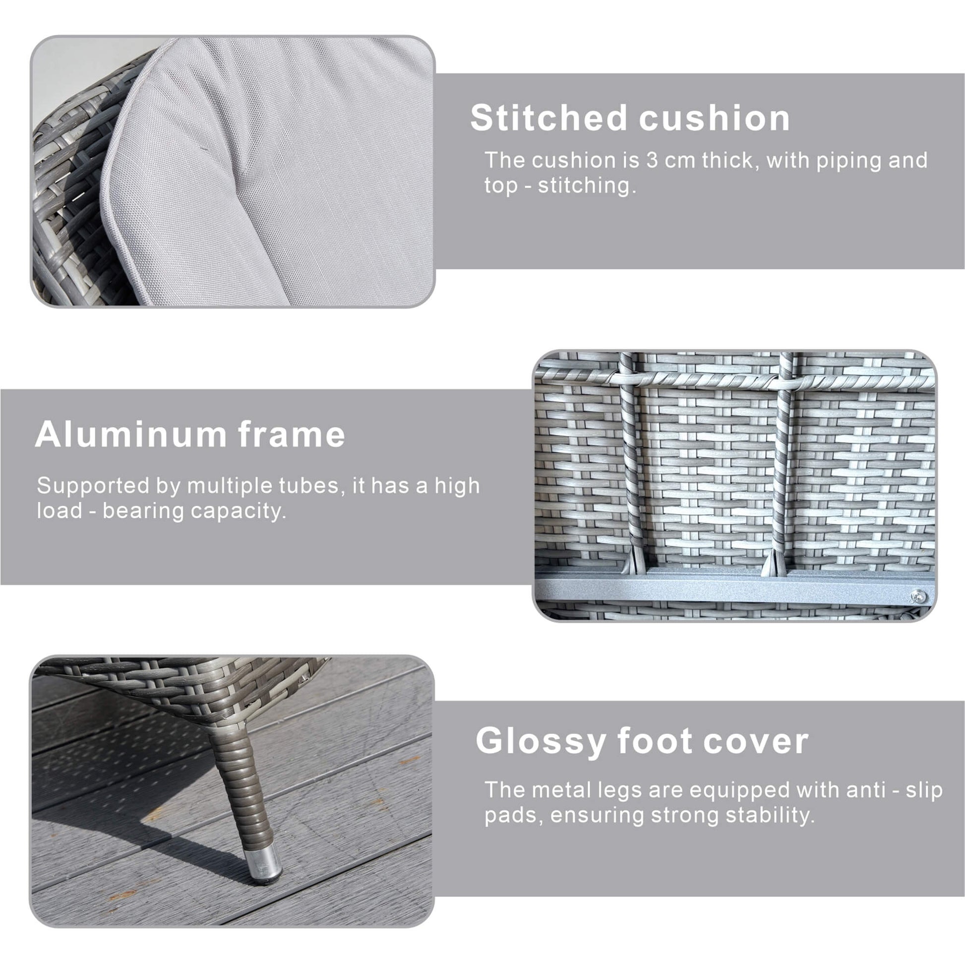 - Weather-Ready: PE rattan with up to 2000 hours UV resistance