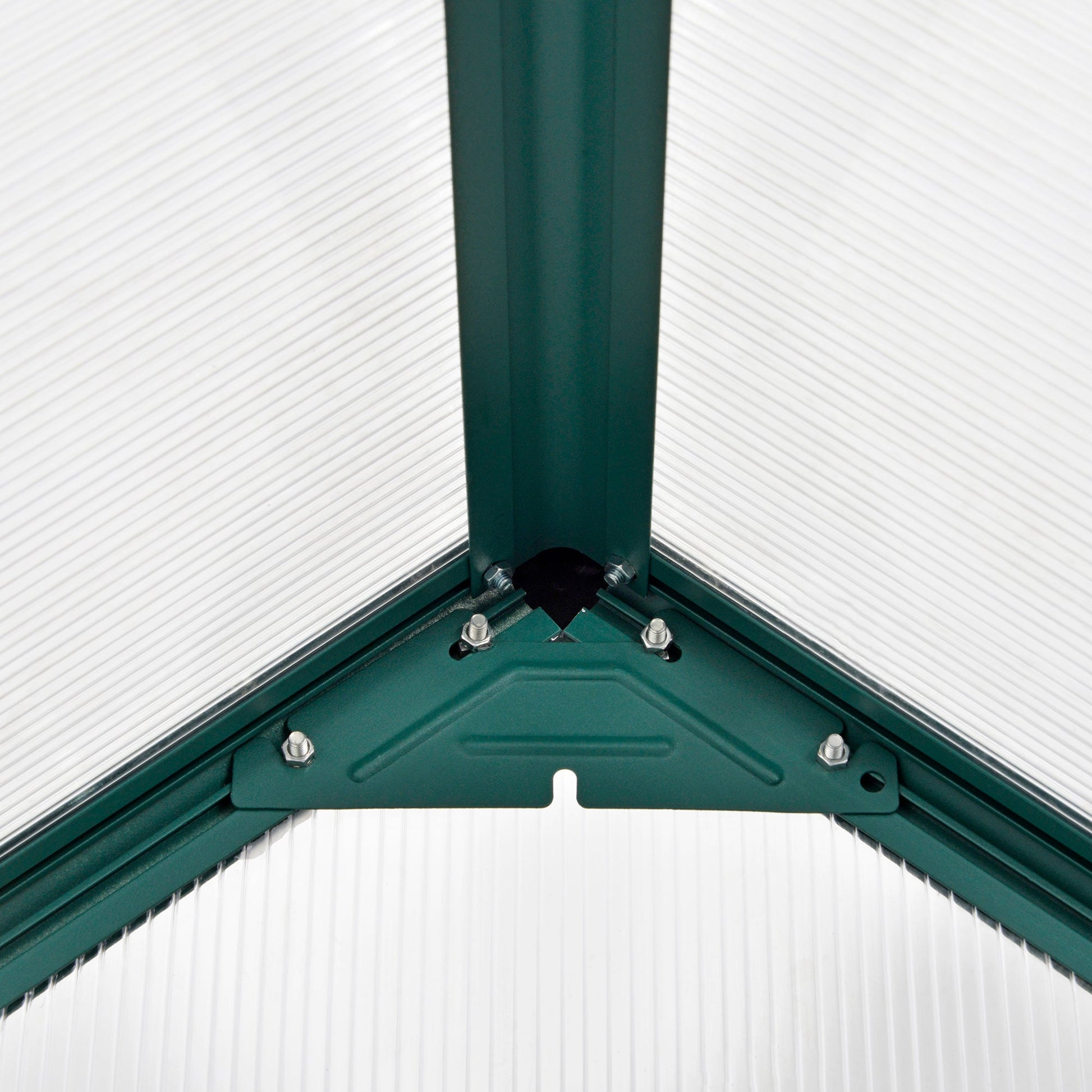 EASY ACCESS: Fitted with a hinged door and window which can be fixed to five different angles. Integrated rain gutters of the polycarbonate green house are effective for water drainage and collection.
