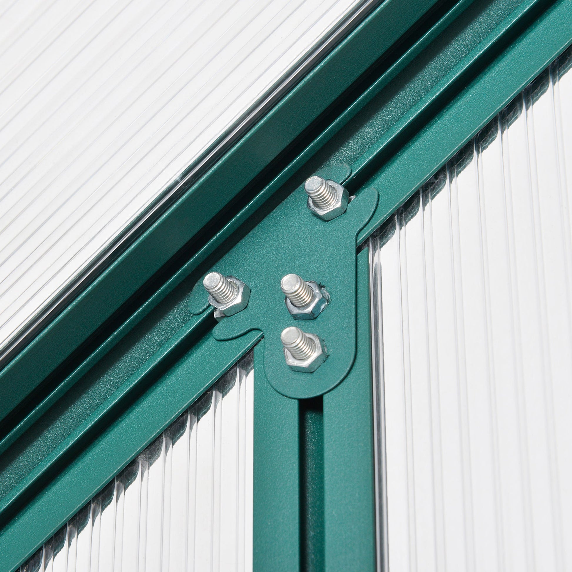 ALUMINIUM FRAME: Naturally lightweight yet robust and resistant to rusting, it keeps the green house for garden structure in shape. POLYCARBONATE PANELS: Tough outside greenhouse panels which keep the heat in and allow sunshine to pass through the hobby greenhouse. 30um resistance to protect your crops from harsh UV.
