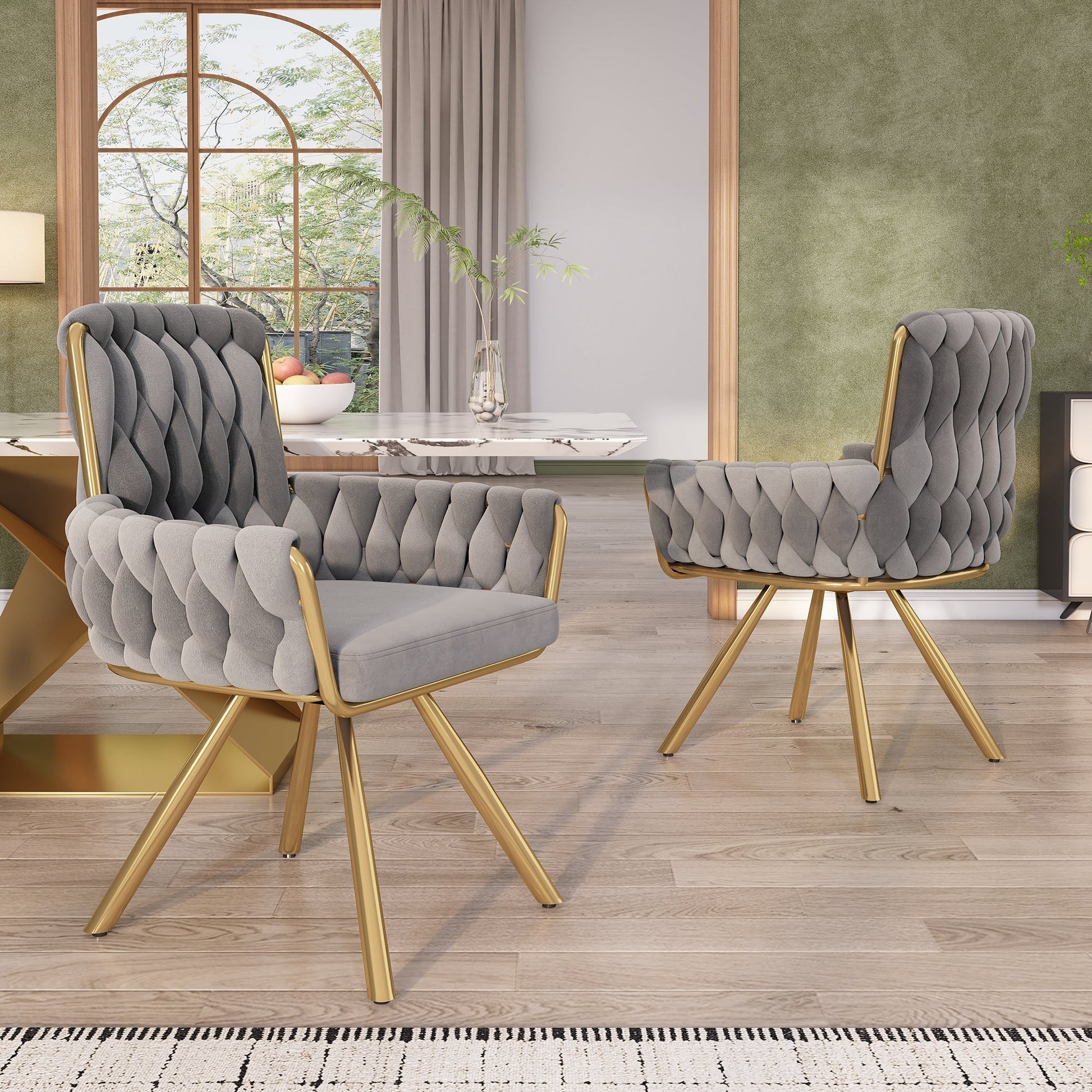 Armchair, Luxurious Single Swivel Chair with Four Metal Support Legs, Gray Velvet