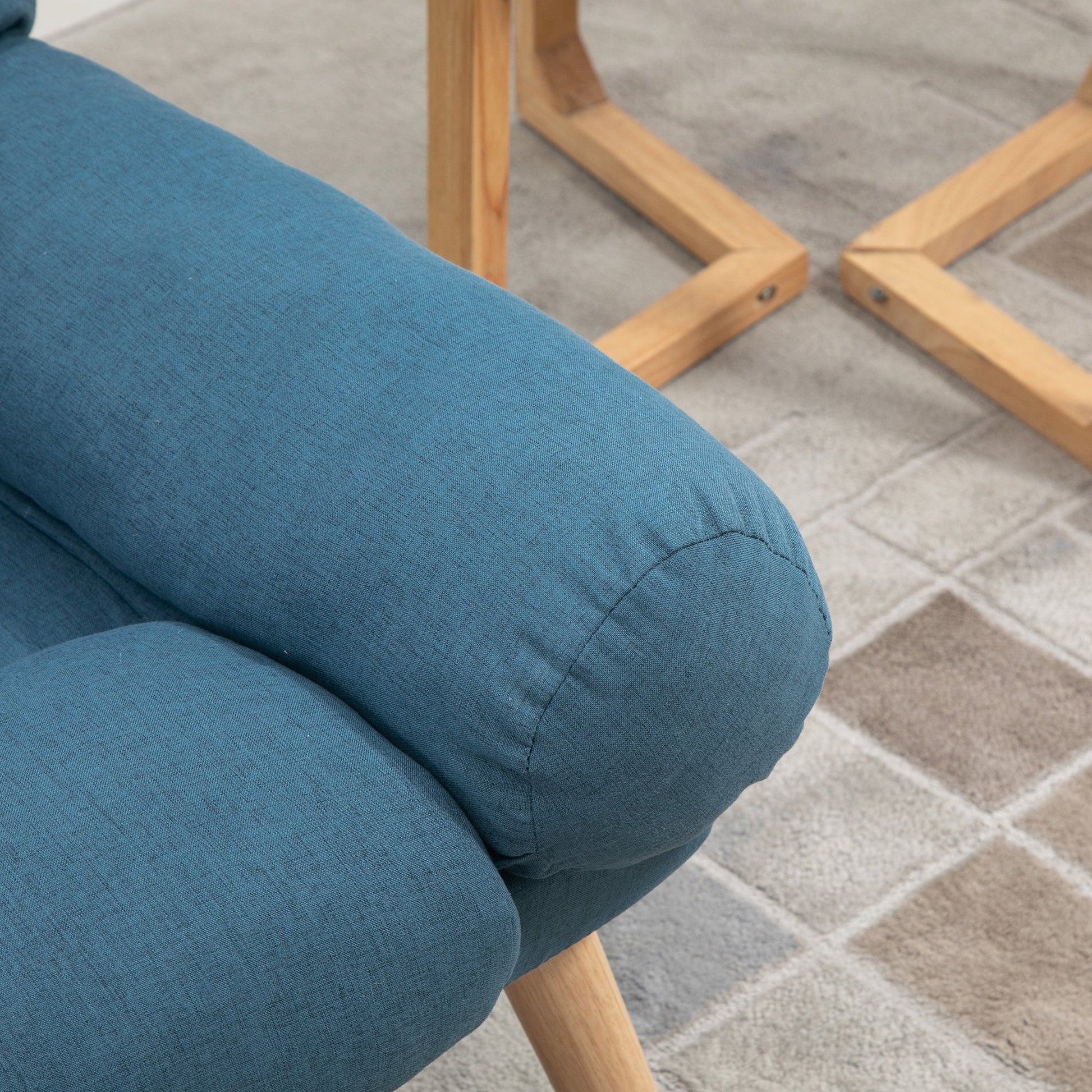 Armchair with Footstool, 180?? Recliner and Ottoman, Adjustable Backrest, Wooden Legs, Blue