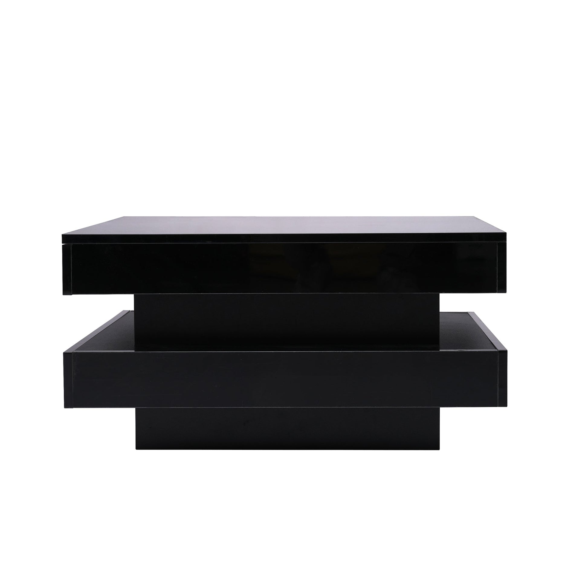 Black Square High Gloss Coffee Table with 360¡ã Rotating Top, Tea Table with 16-Color LED light, 70x70x36 cm