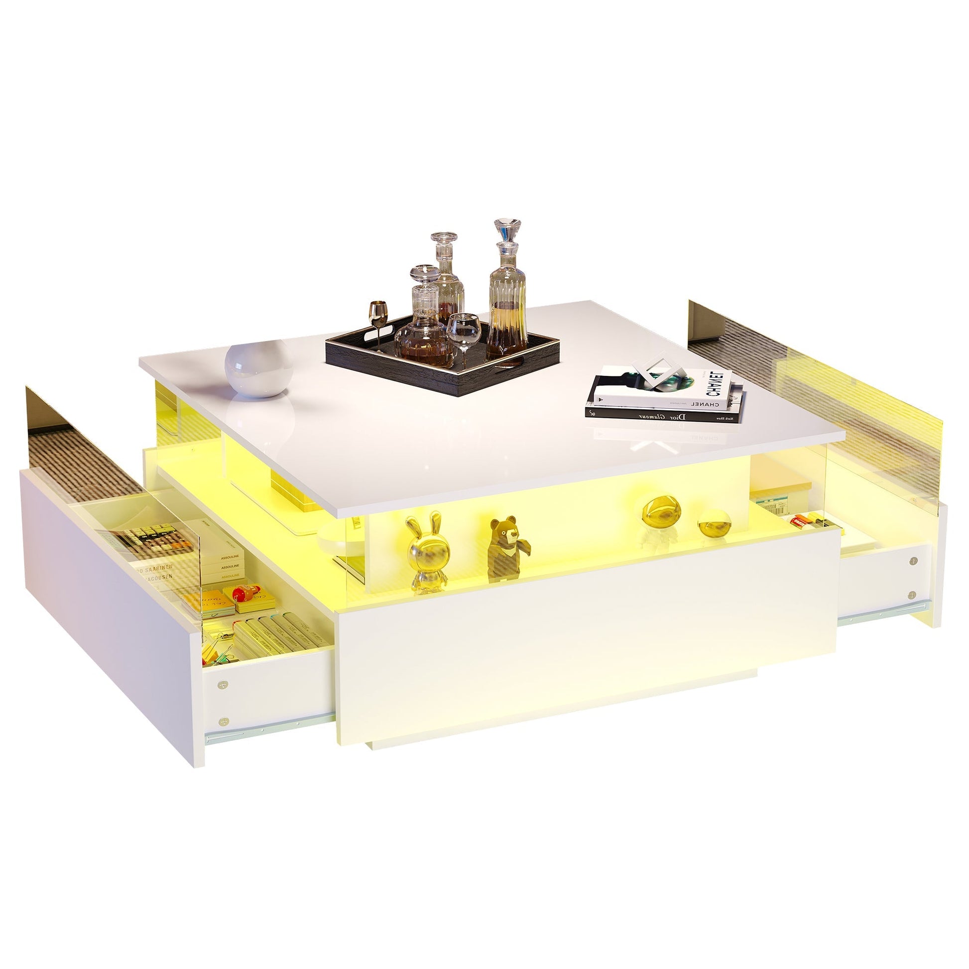 ¡¾Multiple Storage Space¡¿ Our coffee table with LED lights has a large hidden compartment storage space that hides most of the sundries in the living room, and also have 2 large drawers that makes your items orderly and brings you a neat and standardized living room! Also, a 70x70cm large tabletop provides a wide space for daily living room use and work.