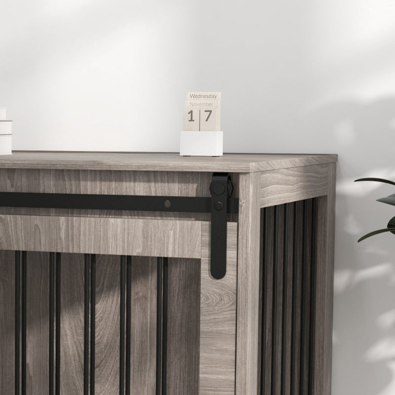 Stylish and practical: With a wood effect finish and barn door design, this dog crate seamlessly blends with your home decor, offering both functionality and aesthetic appeal.