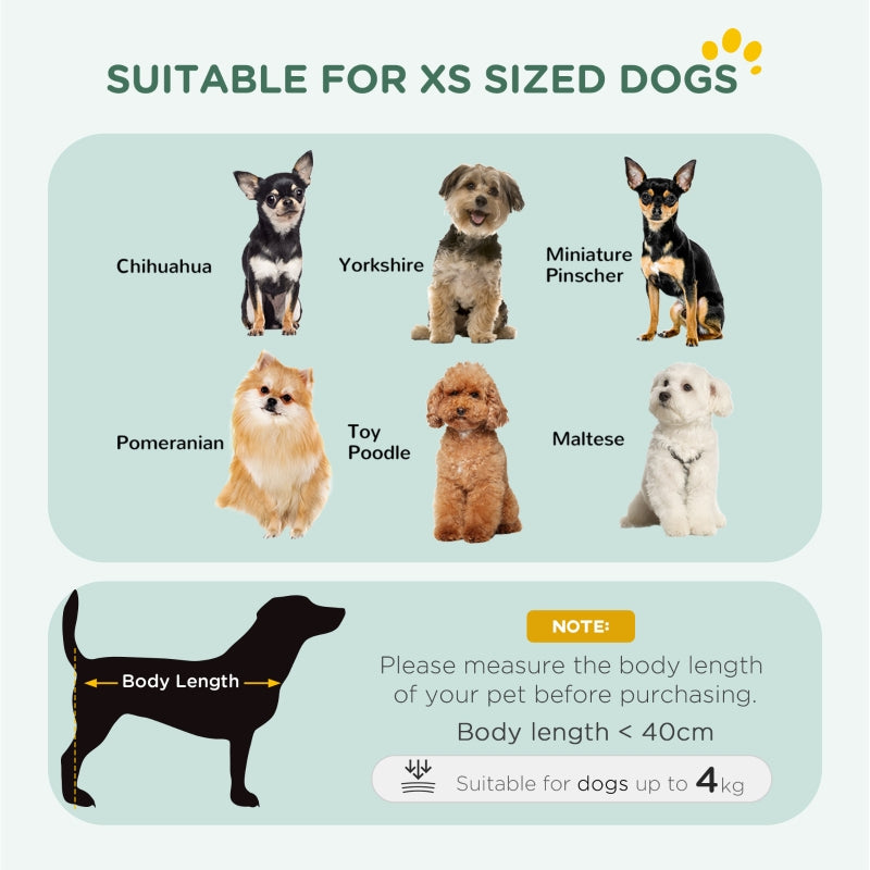 Dimensions: 50H x 60L x 40W cm. Suitable for extra small dogs under 40 cm in body length and 4 kg. Assembly required.