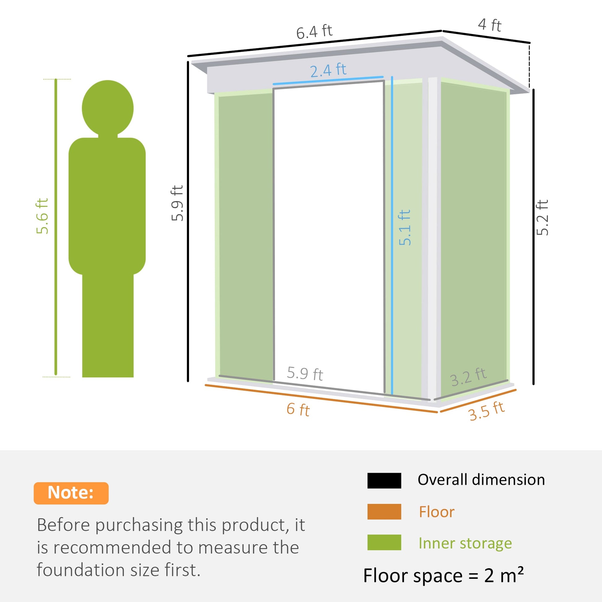 Galvanised Metal Shed, 6.5 x 4FT with Foundation Kit, Lockable Double Sliding Doors, Vents, Green