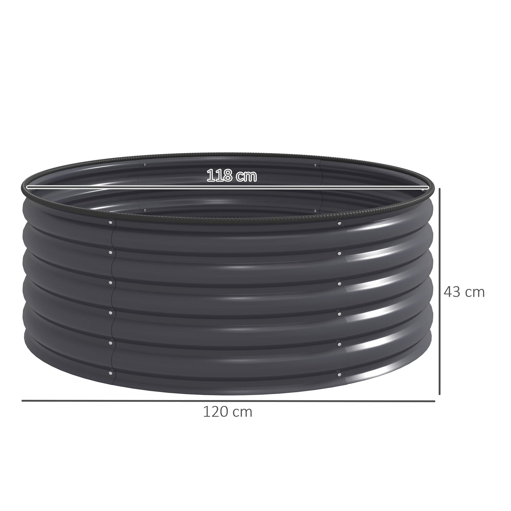Garden bed information: Overall dimension: ¦µ120 x 43Hcm. Planter inner size: ¦µ118 x 43Hcm. Assembly required