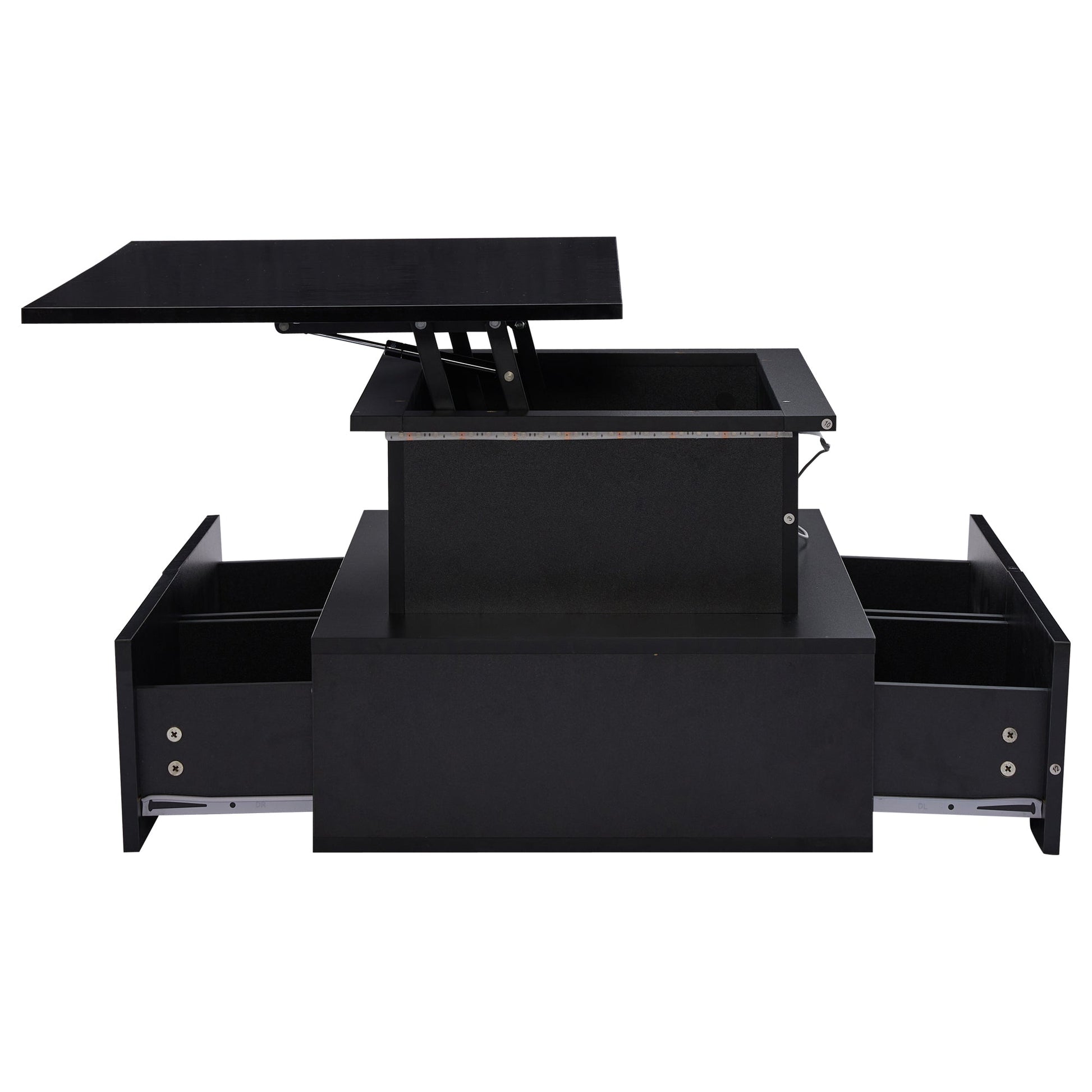 LED High Gloss Coffee Table, 4 Drawers, Lift Top, Storage, Rectangular, Black