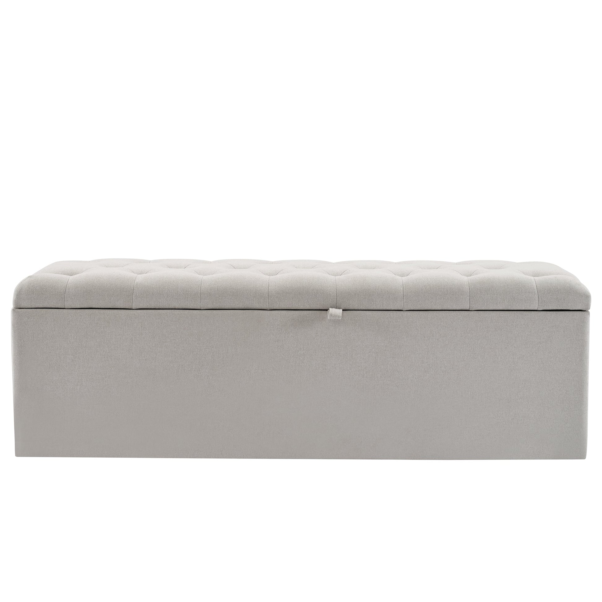 Linen Upholstered Bench with Storage Space, Light Grey