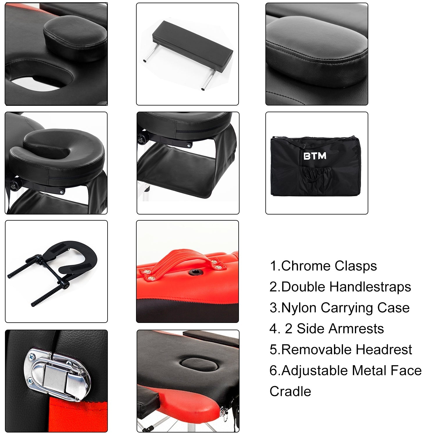 - ¡¾PREMIUM COMFORT¡¿ The tabletop and armrest wings of the massage bed are made of 5 cm thick high-density sponge and waterproof & oil-proof PU leather material, with a detachable headrest and armrests, and a leg support panel that can be adjusted according to needs, providing your customers/family with the ultimate comfort experience.