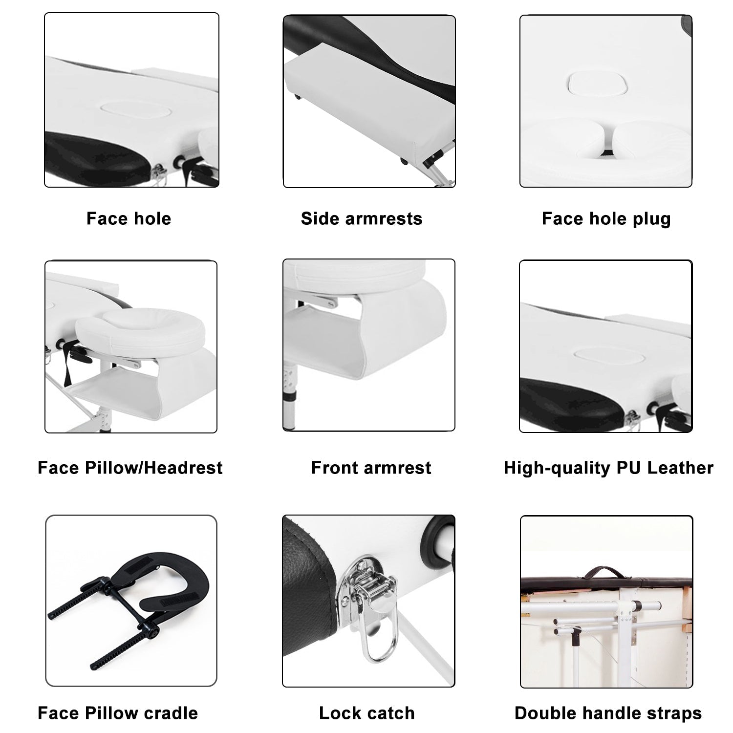 - ¡¾PREMIUM COMFORT¡¿ The tabletop and armrest wings of the massage bed are made of 5 cm thick high-density sponge and waterproof & oil-proof PU leather material, with a detachable headrest and armrests, and a leg support panel that can be adjusted according to needs, providing your customers/family with the ultimate comfort experience.