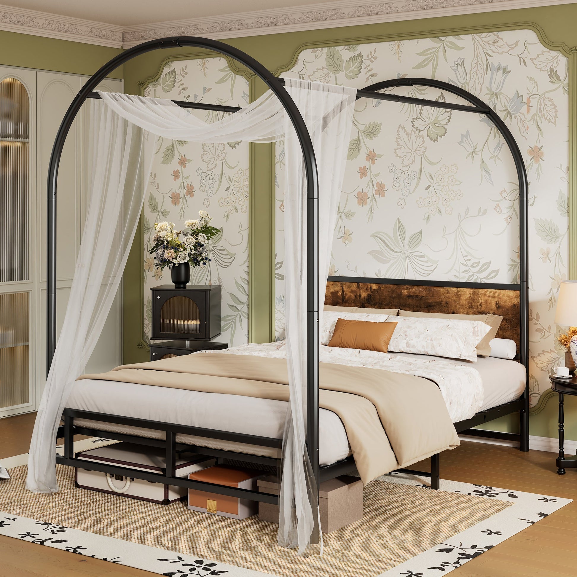 Upgrade your bedroom with this elegant Metal Canopy Double Bed, crafted for adults and teenagers. Featuring a sleek black metal frame and vintage wood MDF headboard, this 4ft6 double bed offers durability and modern style. The curved canopy design allows for decorative drapes (not included) to add privacy or ambiance.