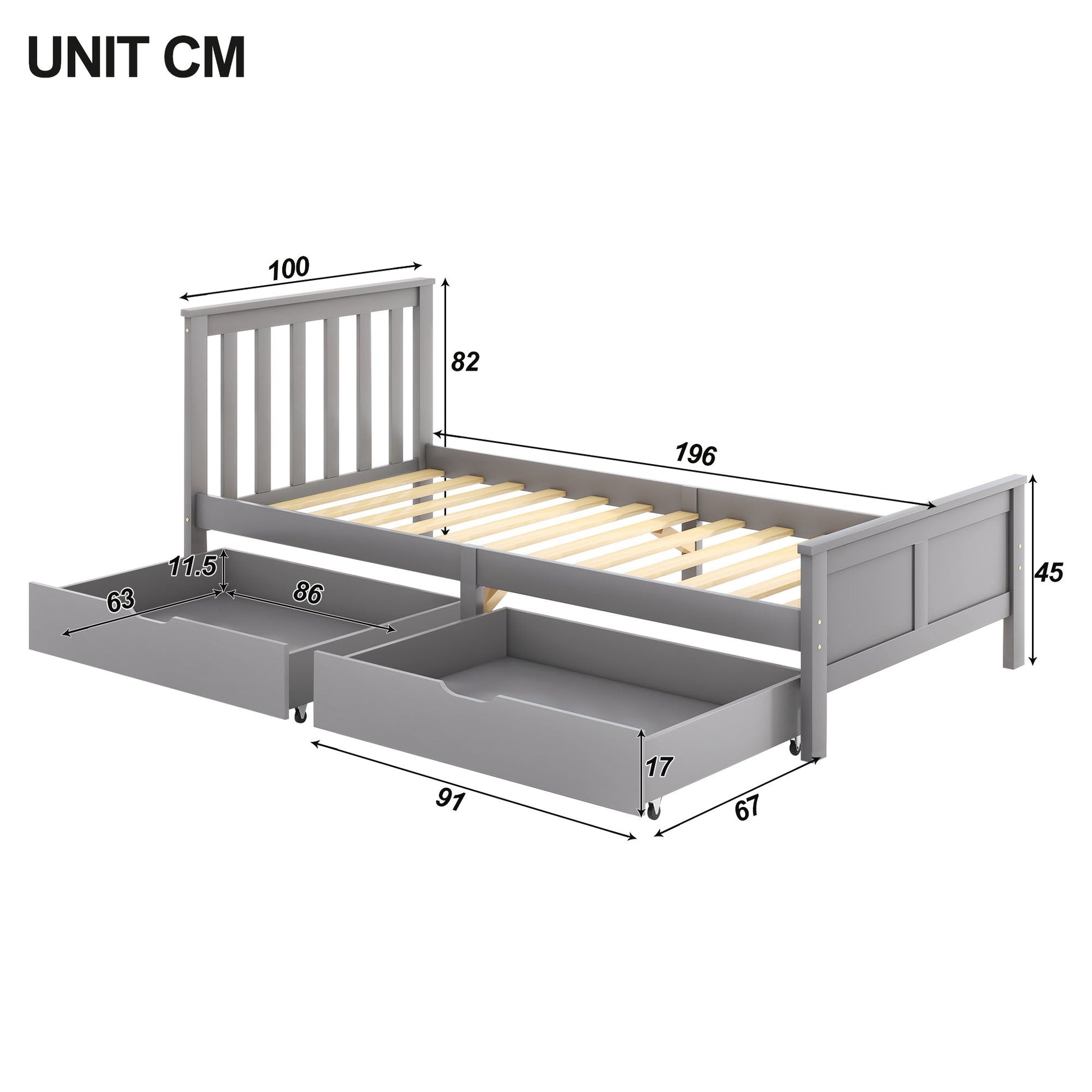 (Mattress not included) Wooden Solid Gray Pine Storage Bed with Drawers Bed Furniture Frame for Adults, Kids, Teenagers 3ft Single (Gray 190x90cm)
