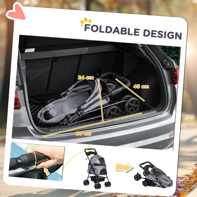 No-Zip Pet Stroller One-Click Fold Travel Pushchair with EVA Wheels, Grey