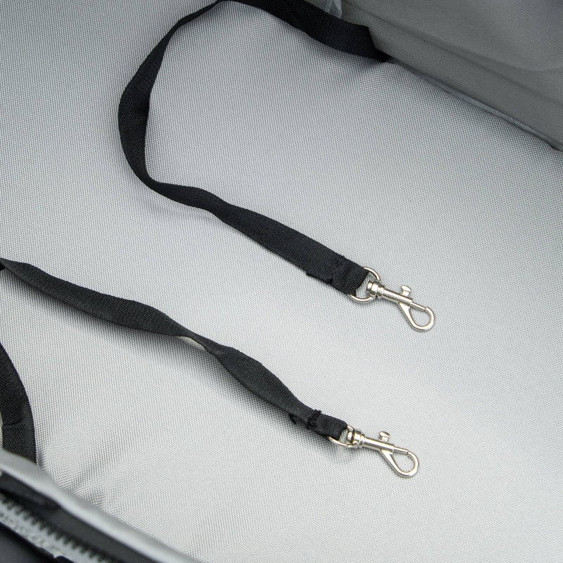 Keep your pet safe: The dog cart has front universal wheels for easy pushing and rear directional wheels with brakes for easy parking. It moves well on short grass and gravelled paths. Includes 2 safety leashes inside to keep your pet securely strapped in. Even a flexible cat can be safe and sound in the car without accidentally escaping.