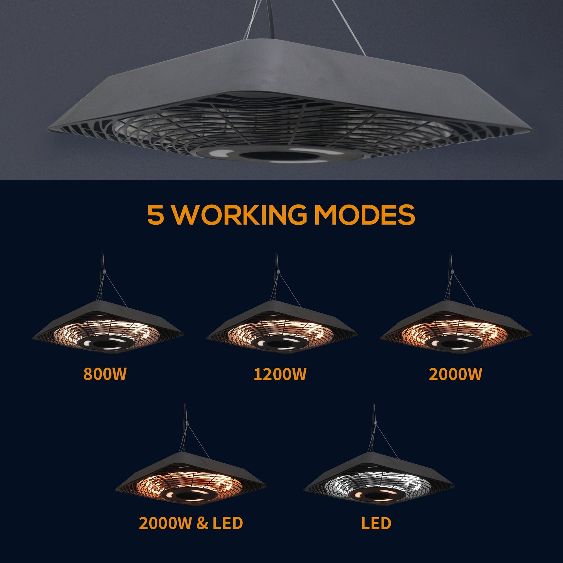 LED LIGHT: Can be used with or without the heating of the garden heater on, perfect for creating a peaceful ambience in your home and garden. 100CM HANGING CHAIN: The electric patio heater is great for placing on your balcony, gazebo