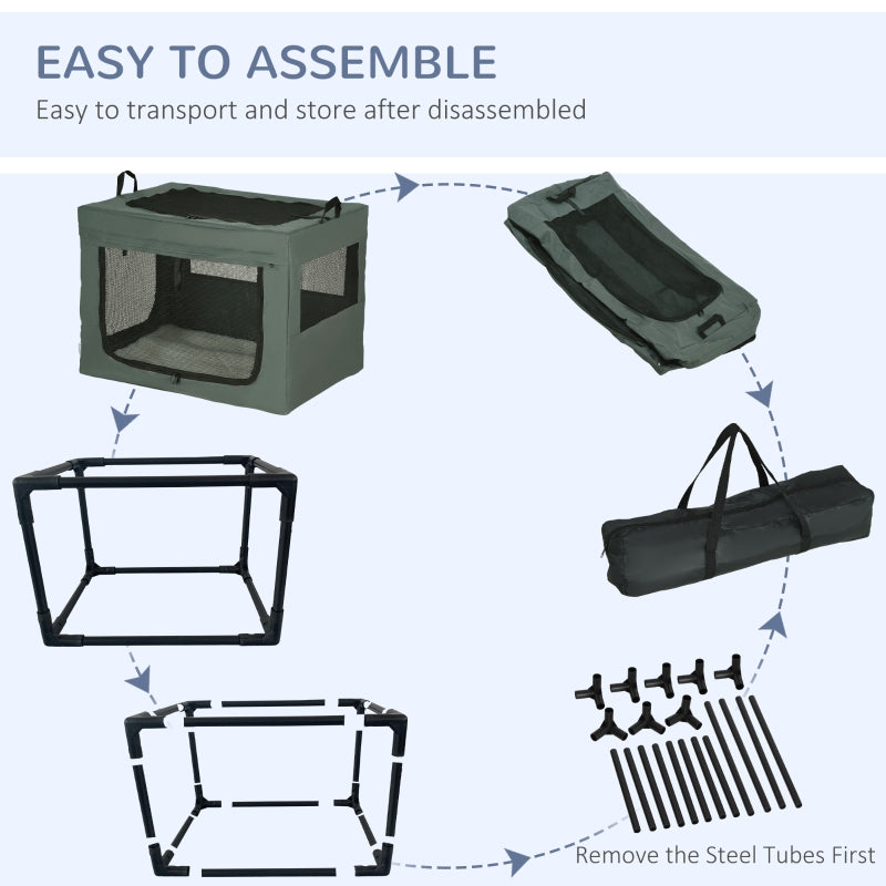 Owner-friendly: The frame steel tube can be removed when you need to store it, saving space. It also comes with two carry handles so you can easily take this portable dog crate anywhere.