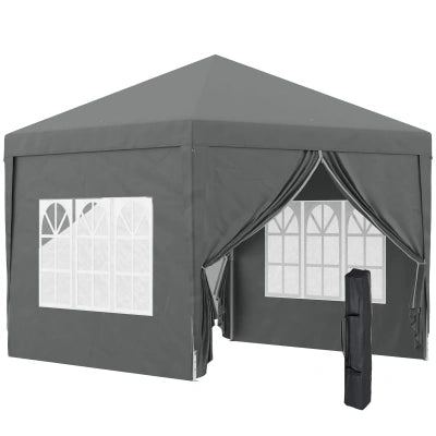 Pop Up Gazebo Water Resistant with Carry Bag and 2 Windows, Grey