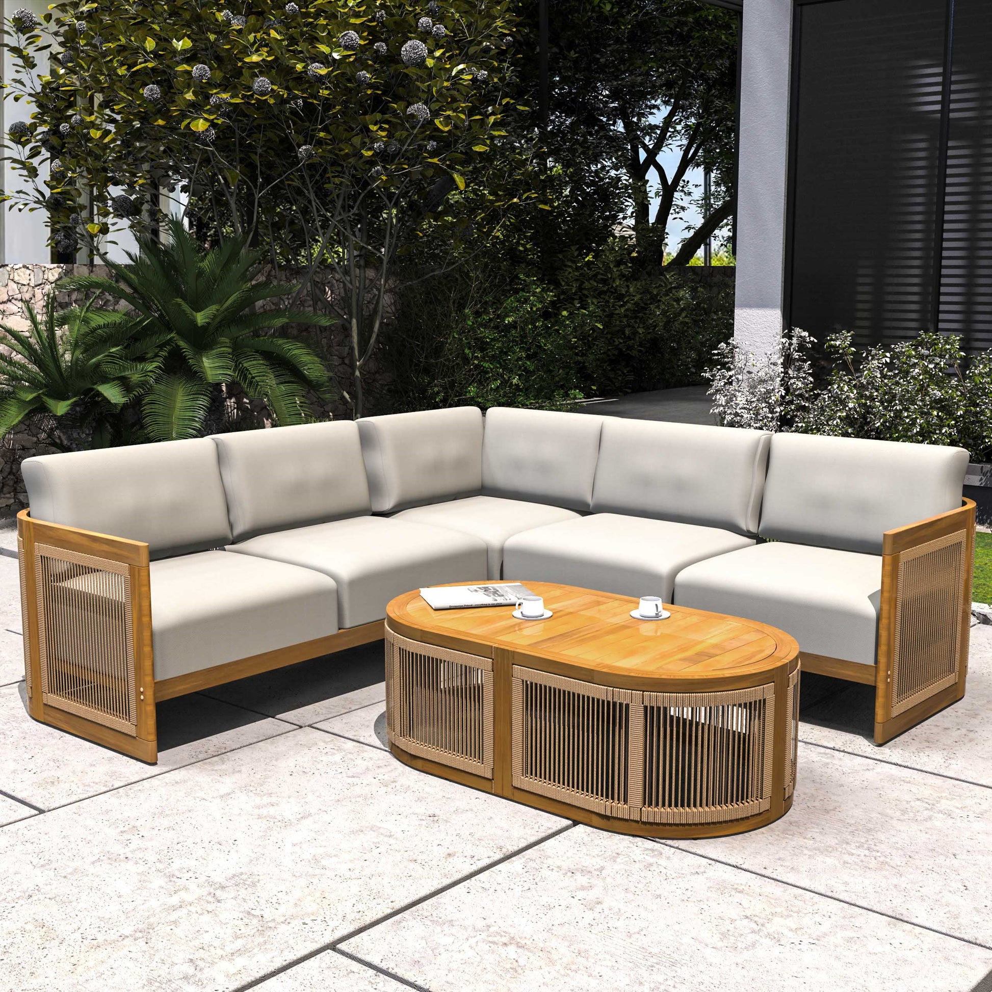 L-Shape 4-Seat Solid Acacia Modular Sofa Set with Oval Coffee Table (PAS-2516-LS+CS+RS+OTA)