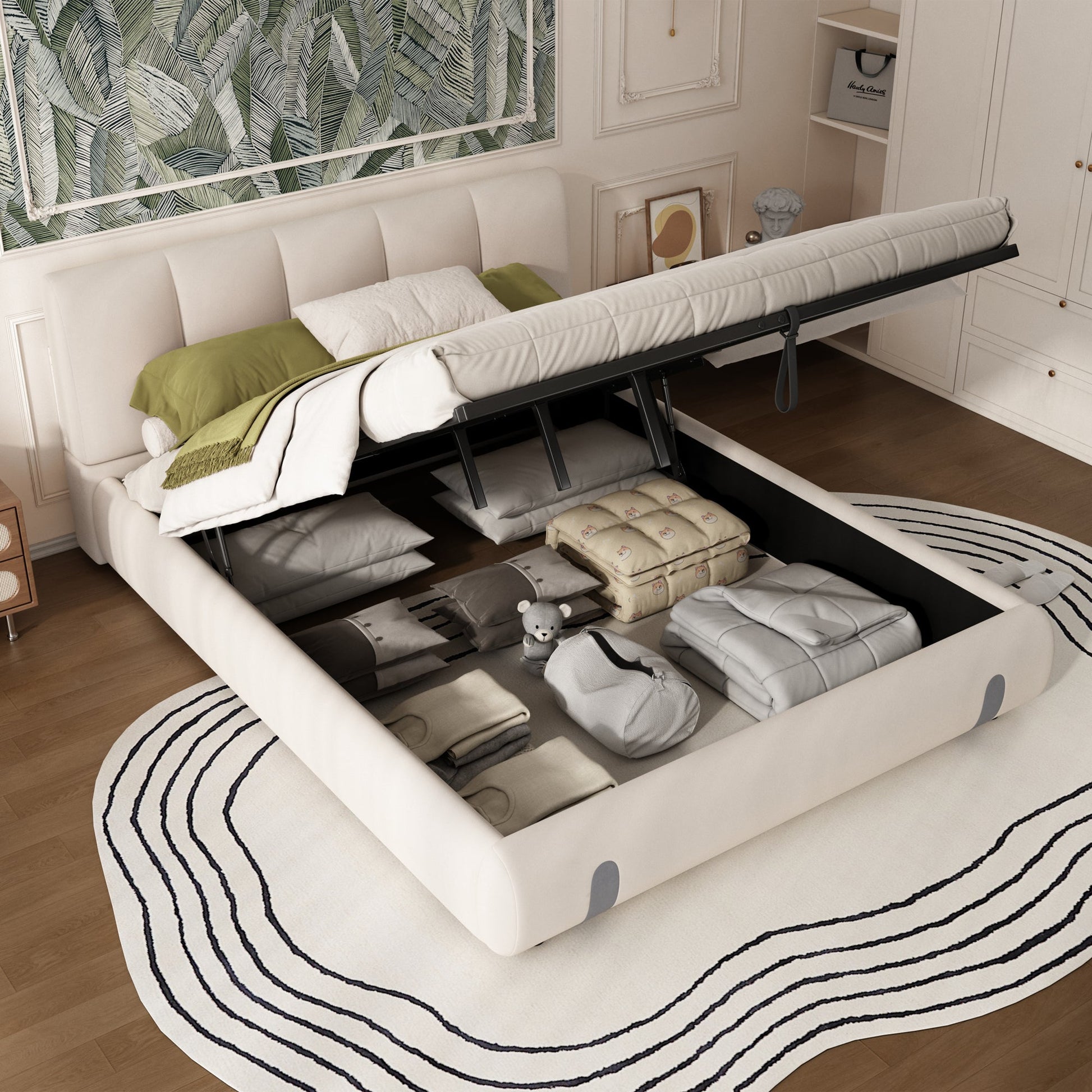 Upholstered Hydraulic Bed for Adults and Teenagers with Under-Bed Storage and Soft Headboard, White Velvet