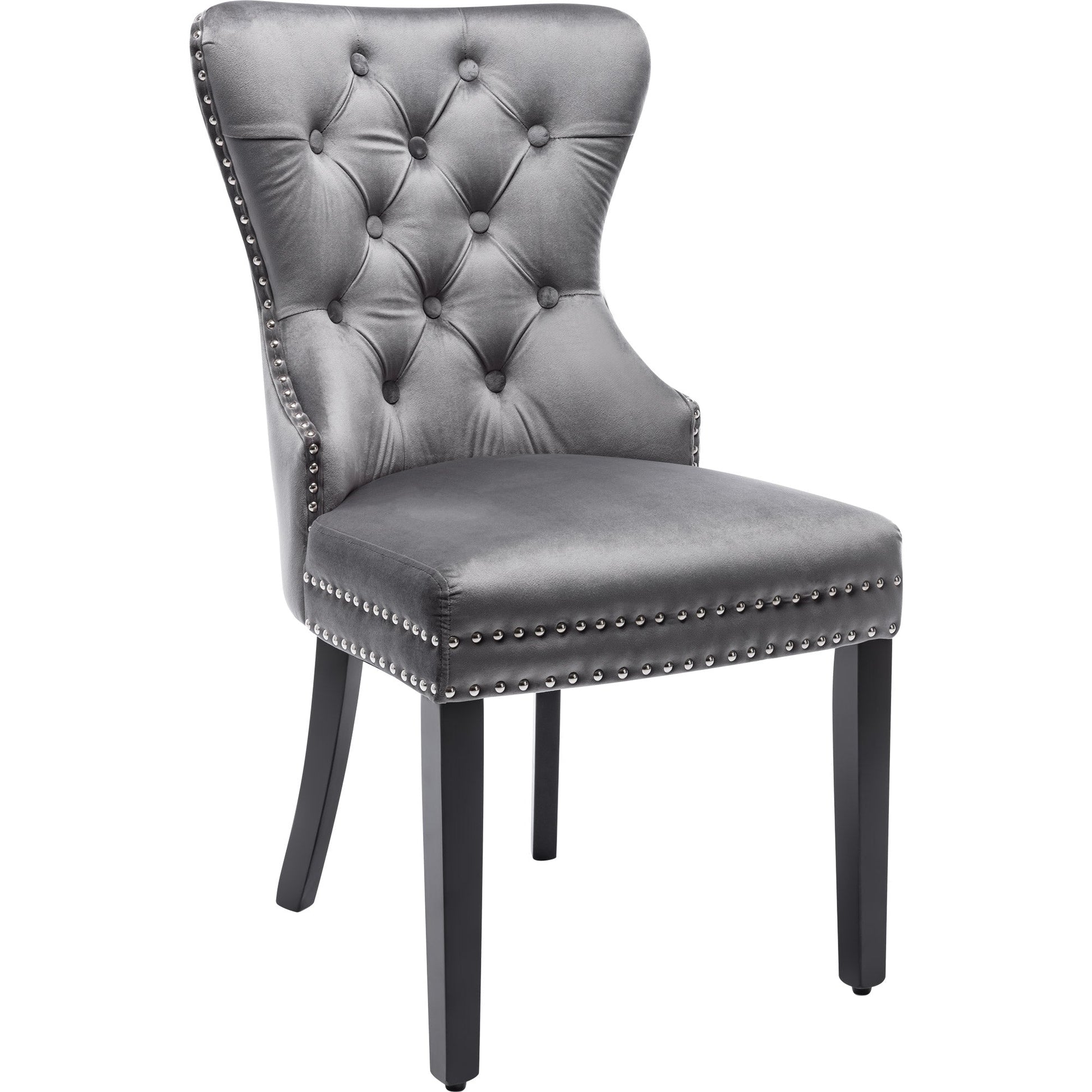 Velvet Dining Chairs Set of 4 with OAK Legs, Button, Chrome Knocker, Nailhead Trim, Grey