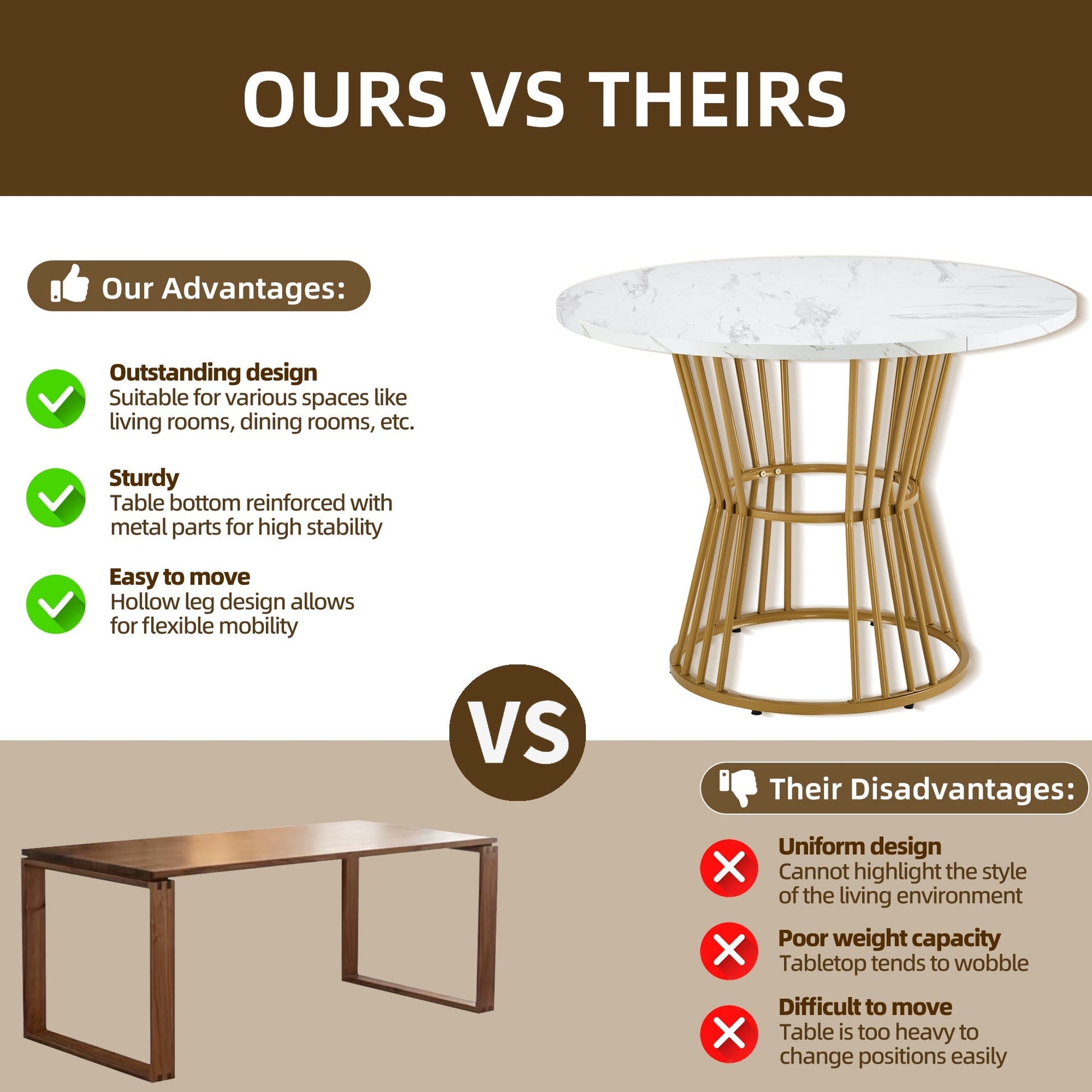 White with Metal Leg (1 piece), Kitchen Table, Sturdy Metal Frame