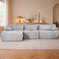 L-Shaped Couch Sofa, 3 Seater Sectional with USB & Cup Holder, Beige Fabric