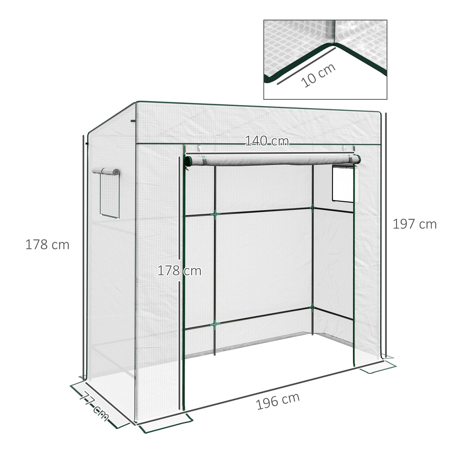 77 x 196cm size: Greenhouse is spacious enough for plenty of plants and vegetables.