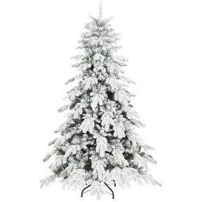 6FT Super Flocked Artificial Christmas Tree - Realistic Snow Effect, Green & White, Folding Metal Base
