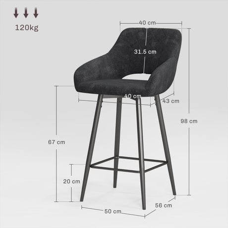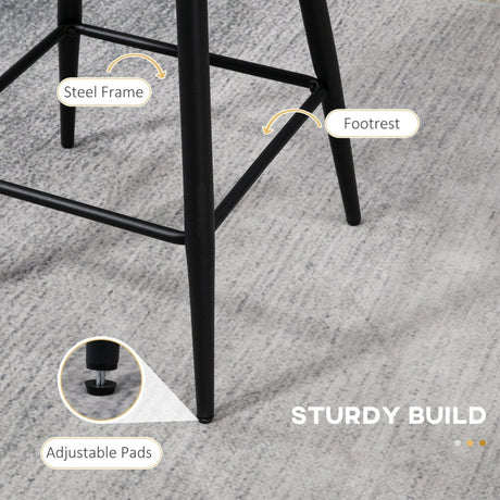 Velvet-Feel Bar Stools - Set of Two, Grey