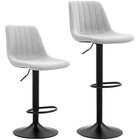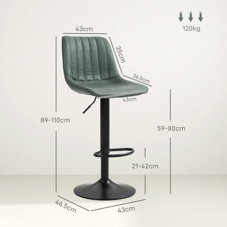 Bar Stool, Adjustable Height Swivel Seat with Footrest, Dark Grey PU Leather (Set of 2)