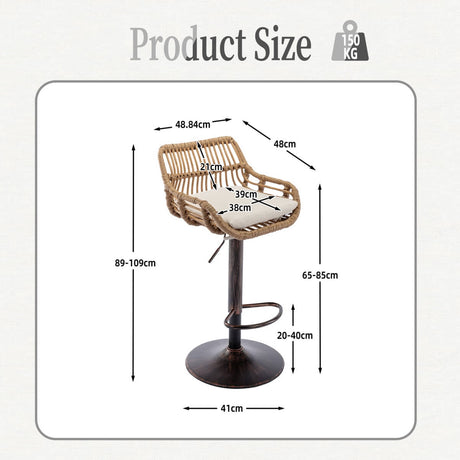 Bar Stools Set of 2, Adjustable Swivel with Back, Brown PU Leather