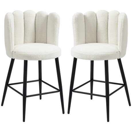 Bar Stools Set of 2, Modern Kitchen Chairs, Faux Cashmere Cream