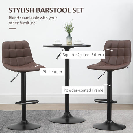 Bar Stools Set of 2, Adjustable Height Swivel Bar Chairs, PU Leather Brown