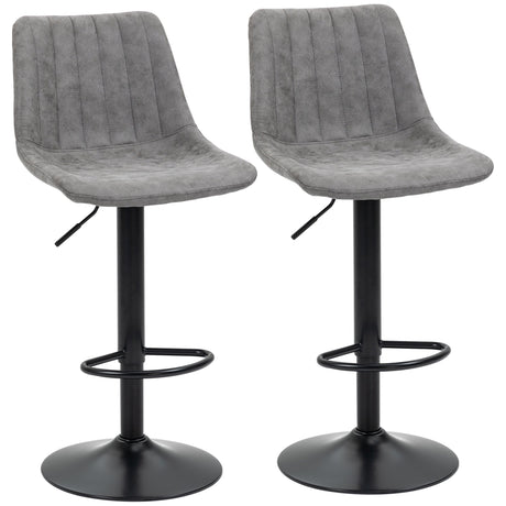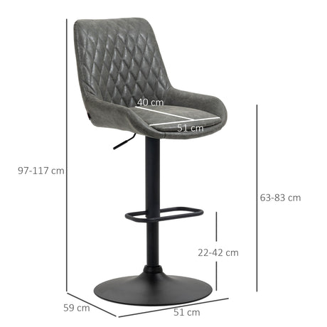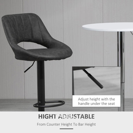 Bar Stools Set of 2, Swivel Adjustable Armless with Back, PU Leather Dark Grey