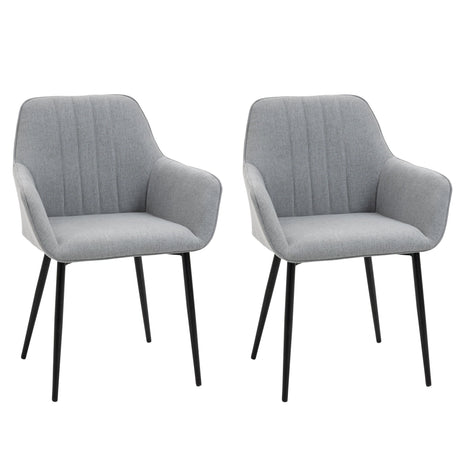 Dining Chairs, Upholstered Accent with Metal Legs, Set of 2, Light Grey Linen Fabric