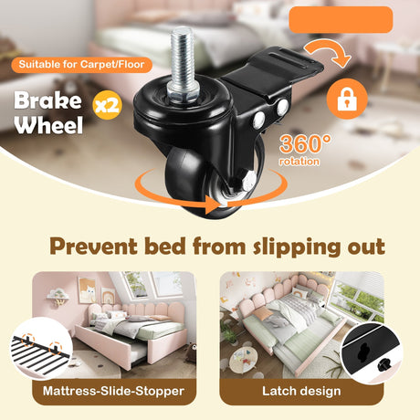 Upholstered Bed Daybed With Pull-Out Bed, 3FT Single Sofa Bed, Velvet, Pink
