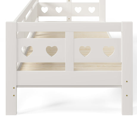 Daybed Cabin Bed Wooden 3FT Single Sofa Guest Bed with Pull-out Trundle, Heart-Shaped, White Wood