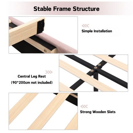 3FT Single Upholstered Velvet Bed - Slatted Frame with Adjustable Headboard