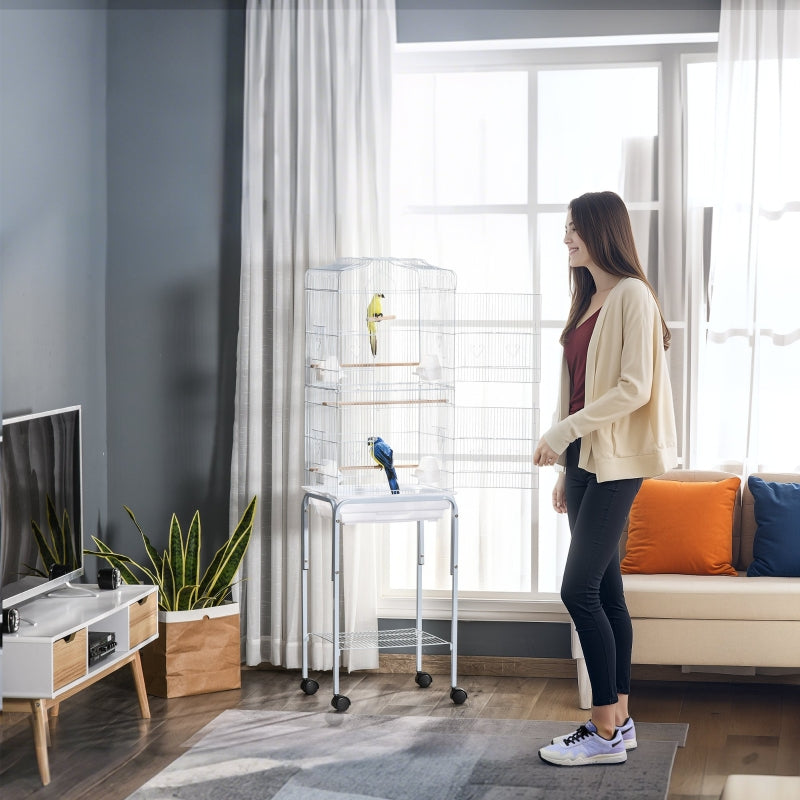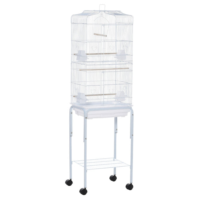 Bird Cage with Stand Wheels Slide-out Tray Storage Shelf, White