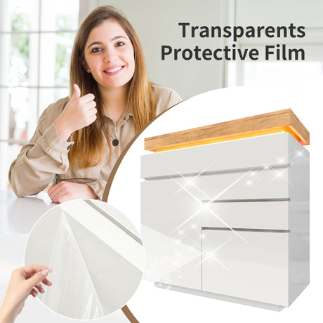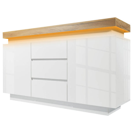 Sideboard Cabinet for Living Room with 2 Doors, 3 Drawers, and Adjustable Shelf, Cream White
