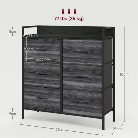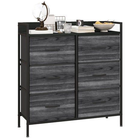 Rustic Chest of Drawers, Six Fabric Drawers - Black