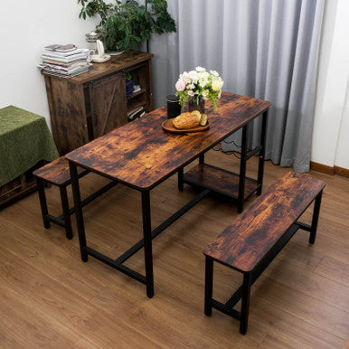 3-Piece Brown Dining Table and Bench Set with Compact Design - PAD-24612D