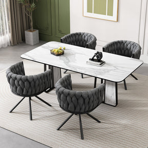 Set of 4 Velvet Dining Chairs, Leisure Swivel Armchair with Metal Legs, Grey