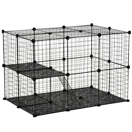 Pet Playpen with Door, Customisable Fence for Small Animals - Black