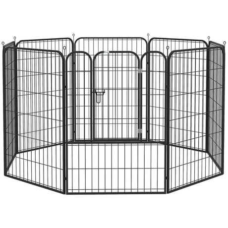 Dog Playpen, Eight-Panel with Door, Large, Indoor, Outdoor, 80cm Tall, Black