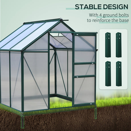 Polycarbonate Greenhouse, 6 x 6ft Walk-In with Slide Door and Window, Dark Green